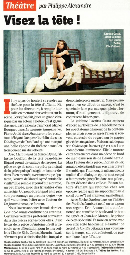 « C’est le spectacle à ne pas manquer, plein d’humour, d’intelligence et… dépourvu de contresens historiques. » Nov 1, 2008 | le Diable rouge, Pièces de théâtre / Theater Plays | 0 commentaires Philippe Alexandre Poster le commentaire Annuler la réponseVotre adresse e-mail ne sera pas publiée. Les champs obligatoires sont indiqués avec *Commentaire * Nom * E-mail * Site web Enregistrer mon nom, mon e-mail et mon site dans le navigateur pour mon prochain commentaire.