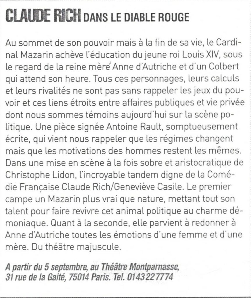 « Du théâtre majuscule. » Sep 1, 2008 | le Diable rouge, Pièces de théâtre / Theater Plays | 0 commentaires Poster le commentaire Annuler la réponseVotre adresse e-mail ne sera pas publiée. Les champs obligatoires sont indiqués avec *Commentaire * Nom * E-mail * Site web Enregistrer mon nom, mon e-mail et mon site dans le navigateur pour mon prochain commentaire.