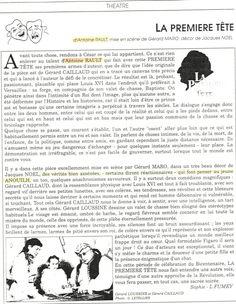 « Le résultat est là, probant, passionnant, plausible… » Mar 11, 1989 | La Première tête, Pièces de théâtre / Theater Plays | 0 commentaires C.D.P., Sophie L Fumey Poster le commentaire Annuler la réponseVotre adresse e-mail ne sera pas publiée. Les champs obligatoires sont indiqués avec *Commentaire * Nom * E-mail * Site web Enregistrer mon nom, mon e-mail et mon site dans le navigateur pour mon prochain commentaire.