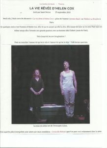 « Les sorties de Sarah » parle de « La vie rêvée d’Helen Cox » Oct 8, 2018 | La vie rêvée d'Helen Cox, Pièces de théâtre / Theater Plays | 0 commentaires Poster le commentaire Annuler la réponseVotre adresse e-mail ne sera pas publiée. Les champs obligatoires sont indiqués avec *Commentaire * Nom * E-mail * Site web Enregistrer mon nom, mon e-mail et mon site dans le navigateur pour mon prochain commentaire.
