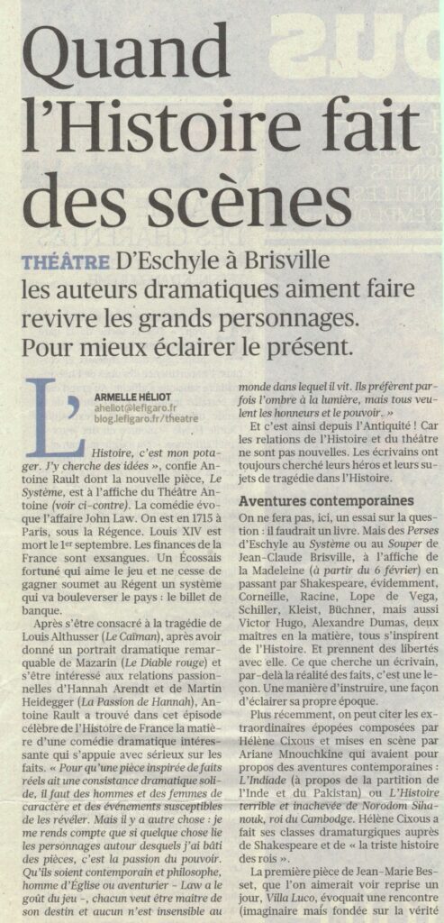 « L’Histoire, c’est mon potager. J’y cherche des idées. » Fév 2, 2015 | Le Système, Pièces de théâtre / Theater Plays | 0 commentaires Armelle Héliot Poster le commentaire Annuler la réponseVotre adresse e-mail ne sera pas publiée. Les champs obligatoires sont indiqués avec *Commentaire * Nom * E-mail * Site web Enregistrer mon nom, mon e-mail et mon site dans le navigateur pour mon prochain commentaire.