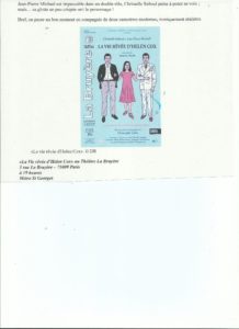 Paris Match parle de « La vie rêvée d’Helen Cox » Oct 5, 2018 | La vie rêvée d'Helen Cox, Pièces de théâtre / Theater Plays | 0 commentaires Merci à Catherine Schwaab! Poster le commentaire Annuler la réponseVotre adresse e-mail ne sera pas publiée. Les champs obligatoires sont indiqués avec *Commentaire * Nom * E-mail * Site web Enregistrer mon nom, mon e-mail et mon site dans le navigateur pour mon prochain commentaire.