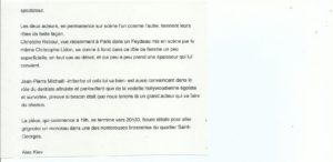 SeniorActu parle de « La vie rêvée d’Helen Cox » Oct 12, 2018 | La vie rêvée d'Helen Cox, Pièces de théâtre / Theater Plays | 0 commentaires Poster le commentaire Annuler la réponseVotre adresse e-mail ne sera pas publiée. Les champs obligatoires sont indiqués avec *Commentaire * Nom * E-mail * Site web Enregistrer mon nom, mon e-mail et mon site dans le navigateur pour mon prochain commentaire.