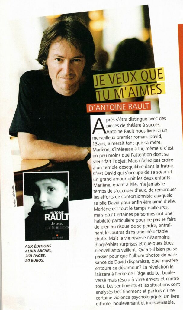 « Un livre difficile, bouleversant et indispensable. » Mai 1, 2010 | Je veux que tu m'aimes, Romans / Novels | 0 commentaires « Notre sélection » – livres Poster le commentaire Annuler la réponseVotre adresse e-mail ne sera pas publiée. Les champs obligatoires sont indiqués avec *Commentaire * Nom * E-mail * Site web Enregistrer mon nom, mon e-mail et mon site dans le navigateur pour mon prochain commentaire.