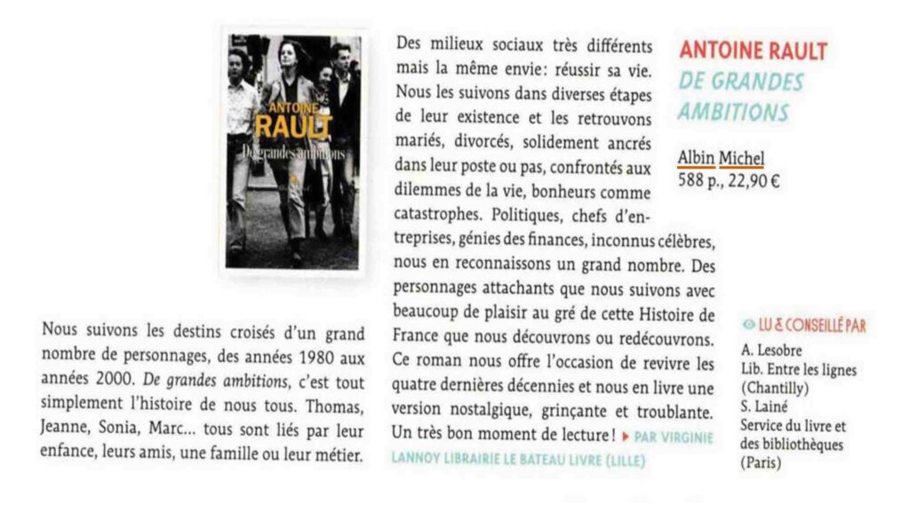 « Un très bon moment de lecture ! » Sep 22, 2020 | De grandes ambitions, Romans / Novels | 0 commentaires Virginie Lannoy, librairie « Le bateau livre » Poster le commentaire Annuler la réponseVotre adresse e-mail ne sera pas publiée. Les champs obligatoires sont indiqués avec *Commentaire * Nom * E-mail * Site web Enregistrer mon nom, mon e-mail et mon site dans le navigateur pour mon prochain commentaire.
