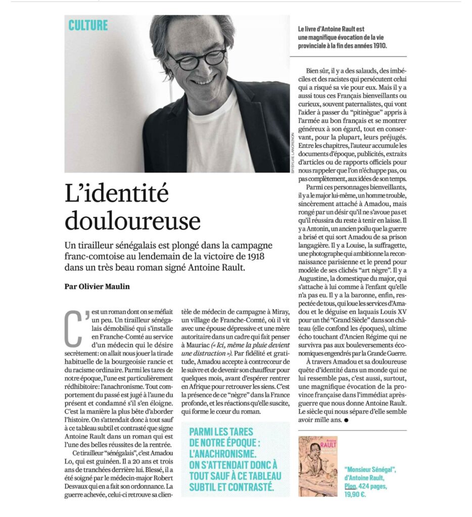 L’identité douloureuse Oct 1, 2022 | Monsieur Sénégal, Romans / Novels | 0 commentaires « On s’attendait donc à tout sauf à ce tableau subtil et contrasté. » Merci Olivier Maulin ! Poster le commentaire Annuler la réponseVotre adresse e-mail ne sera pas publiée. Les champs obligatoires sont indiqués avec *Commentaire * Nom * E-mail * Site web Enregistrer mon nom, mon e-mail et mon site dans le navigateur pour mon prochain commentaire.